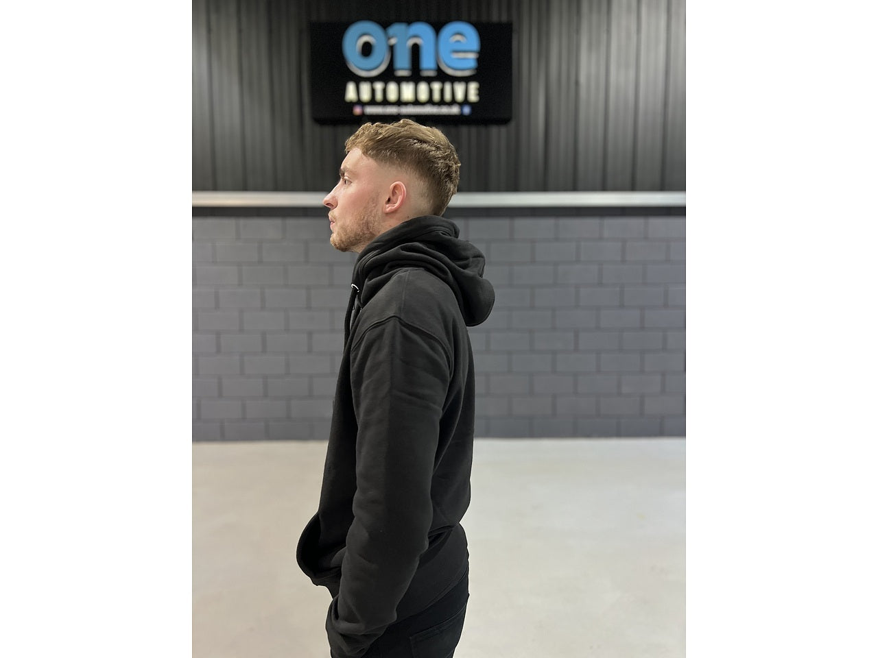 Experience ultimate comfort with our black organic hoodie, showcasing embroidered One Automotive and Wheeler Dealer logos. This eco-friendly hoodie is designed for both style and sustainability. A must-have for fans and automotive enthusiasts alike, as worn by Mike Brewer and the One Automotive team.